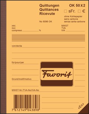 Die Quittungen von FAVORIT überzeugen nicht nur durch ihre Funktionalität, sondern auch durch ihre Robustheit und Benutzerfreundlichkeit. Dank hochwertiger Materialien und durchdachtem Design sind sie besonders langlebig und einfach in der Handhabung.