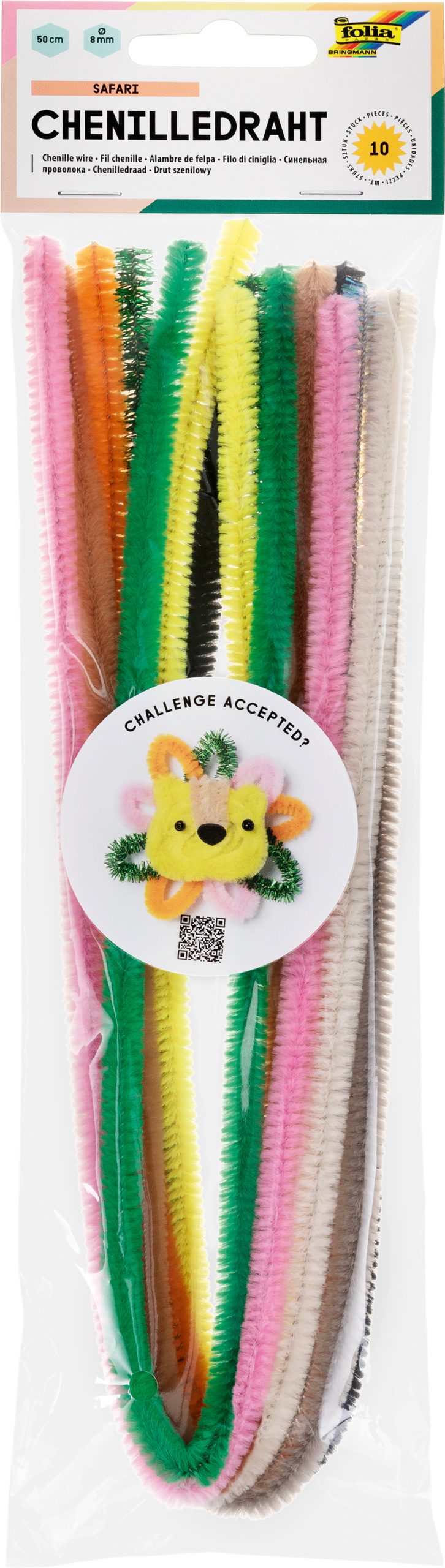 Entdecken Sie die FOLIA Chenilledraht 8mmx50cm im Safari-Design. Ideal für kreative Bastelprojekte, erhältlich im praktischen 10er-Pack.