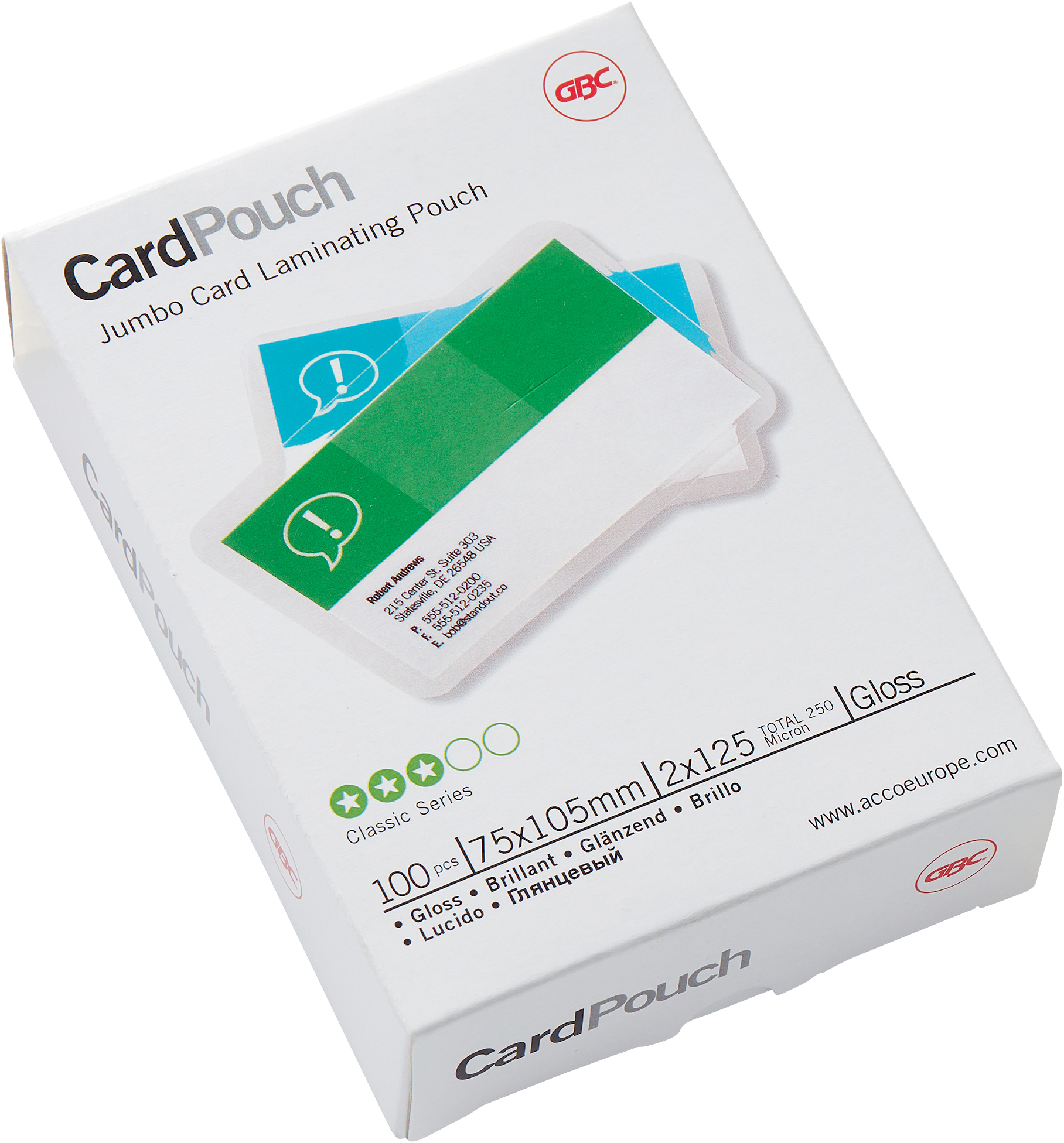 Die GBC Laminiertasche 75x105mm (3740303) bietet mit 125my und glanzvollem Finish optimalen Schutz für Ihre Dokumente. Ideal für professionelle Präsentationen und langlebige Archiv