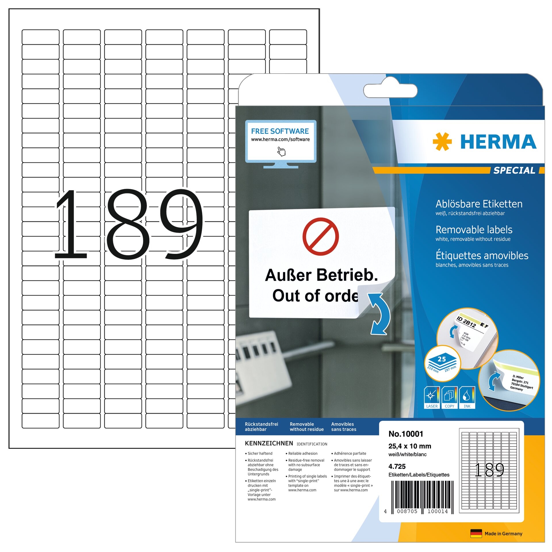 Entdecken Sie die vielseitigen HERMA Etiketten, die sich perfekt für alle Ihre Beschriftungsbedürfnisse eignen. Mit einer Grösse von 25,4 x 10 mm und einer Packung von 4725 Stück auf 25 Blättern sind diese weissen, non-permanenten Etiketten die ideale Lösung für temporäre Anwendungen. Ob im Büro, im Haushalt oder in der Schule – mit diesen Etiketten haben Sie immer die richtige Beschriftung zur Hand.