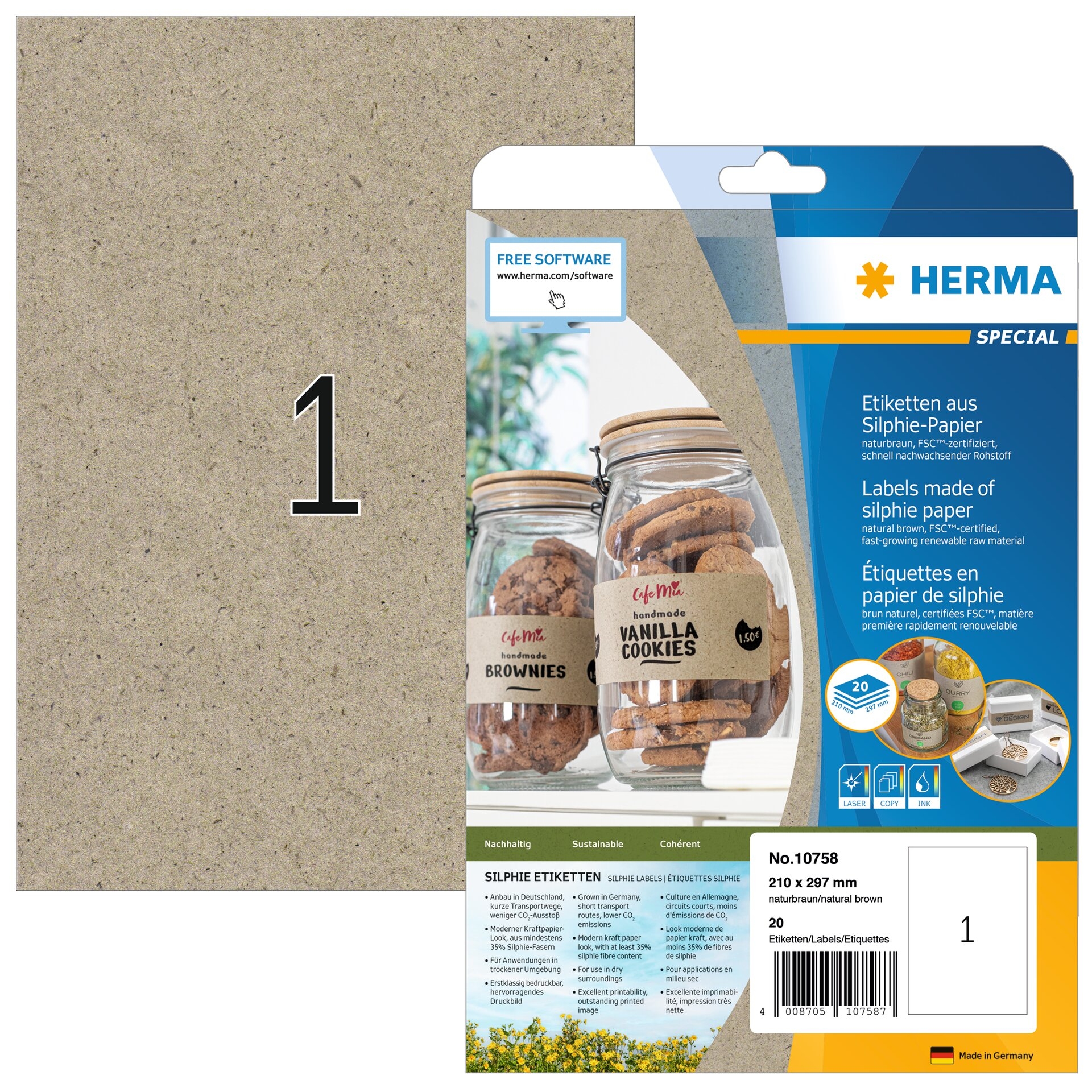 Die HERMA Etiketten 210 x 297 mm 10758 aus Silphie-Papier sind eine umweltfreundliche und vielseitige Lösung für all Ihre Etikettierbedürfnisse. Mit ihrer hohen Qualität, einfachen Handhabung und hervorragenden Haftung sind sie die perfekte Wahl für jedes Projekt. Ob im Büro, Zuhause oder bei kreativen Bastelarbeiten – diese Etiketten überzeugen durch ihre Funktionalität und Nachhaltigkeit.