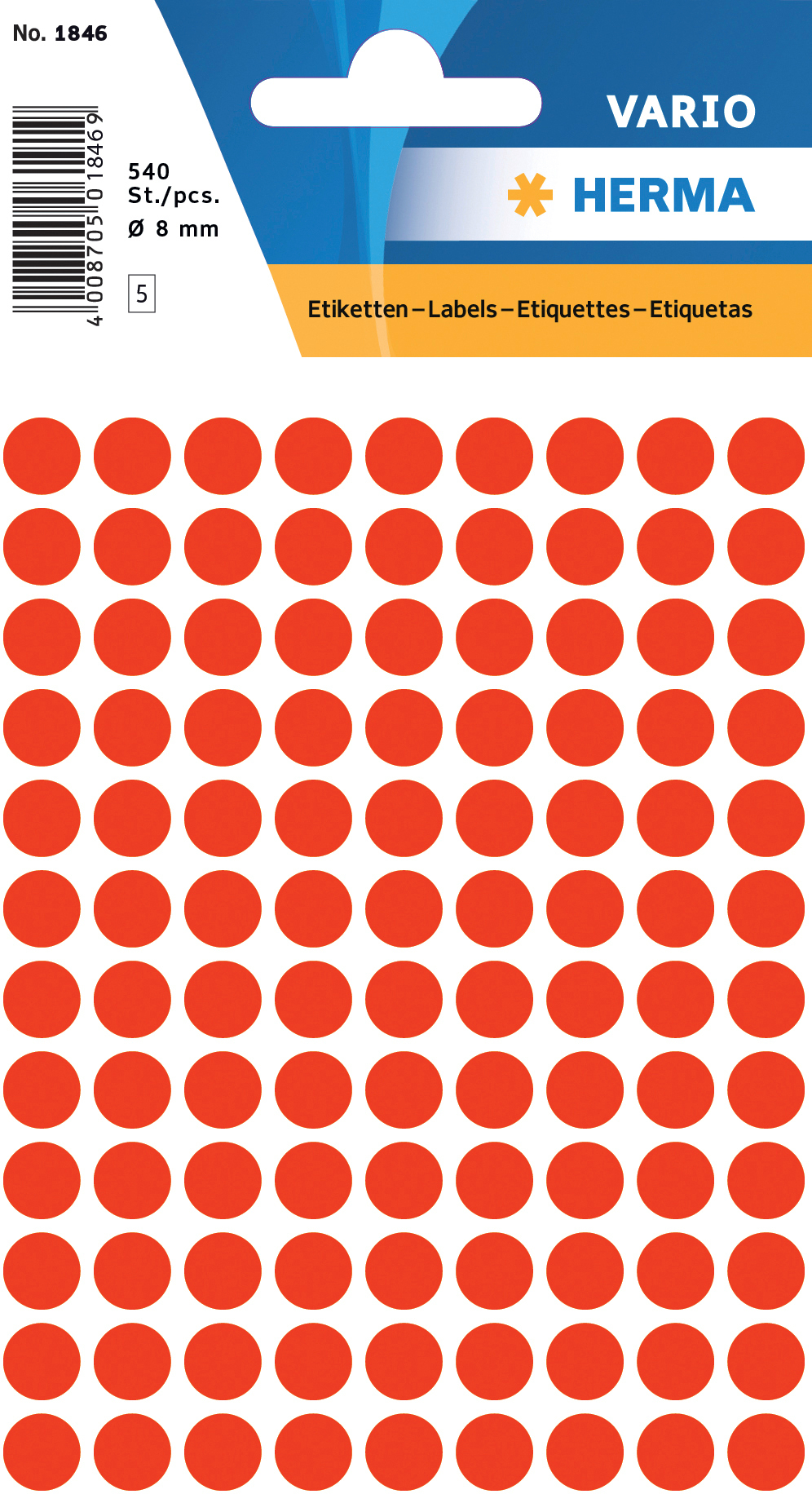 HERMA Etiketten rund 8mm 1846 leuchtrot 540 Stück