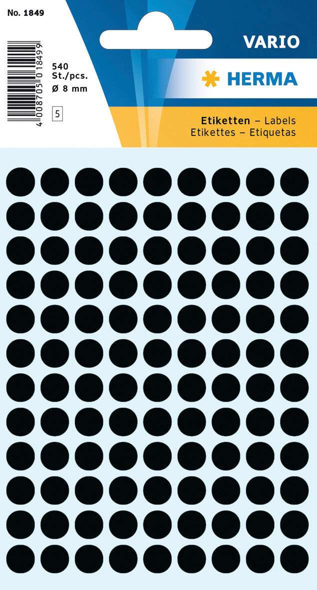 HERMA Etiketten rund 8mm 1849 schwarz 540 Stück