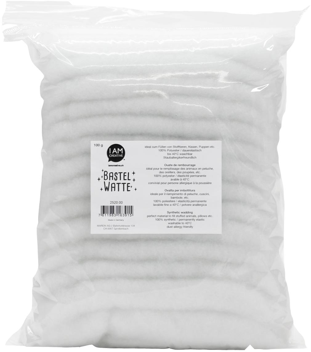Die I AM CREATIVE Bastelwatte besteht aus 100% Polyester und ist somit besonders weich und leicht. Dieses Material zeichnet sich durch seine hohe Flexibilität und Formbarkeit aus, wodurch es sich mühelos verarbeiten lässt. Die weiche Textur sorgt dafür, dass die Bastelwatte nicht nur angenehm in der Hand liegt, sondern auch in verschiedenen Projekten angenehm zu verwenden ist.