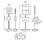 Je nach Bedarf sind die Menüständer in verschiedenen Höhen erhältlich. Für das maximale A4-Format beträgt die Höhe des Rondos 1300 mm, während sie für das maximale A3-Format 1500 mm beträgt. Falls Sie spezielle Anforderungen haben, können auch individuelle Höhenkombinationen auf Anfrage angefertigt werden.
