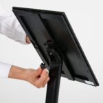 – Stabiler Sockel: Das elegante Sockeldesign des Infoständers garantiert nicht nur Stabilität, sondern zieht auch die Blicke auf sich. Er fügt sich harmonisch in jede Umgebung ein und sorgt für eine professionelle Darbietung.