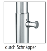 Dank des Schnäppers ist der Kleiderständer in der Höhe verstellbar. Diese Funktion ermöglicht es Ihnen, den Ständer flexibel an verschiedene Präsentationssituationen anzupassen. Ihre Kleidungsstücke werden somit immer auf der optimalen Höhe präsentiert, um die Aufmerksamkeit Ihrer Kunden zu gewinnen.