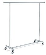 Das moderne und elegante Design des verchromten Vierkantrohrs macht den Kleiderständer zu einem ästhetischen Highlight, das nahtlos in verschiedene Einrichtungsstile passt und eine ansprechende Präsentation der Kleidung ermöglicht.