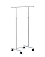 Ausgestattet mit flachen Kunststoffrollen mit einem Durchmesser von 5 cm, ermöglicht der «Mini» Kleiderständer eine einfache Bewegung. Die integrierten Bremsen gewährleisten dabei Stabilität und Kontrolle über die Positionierung des Ständers.