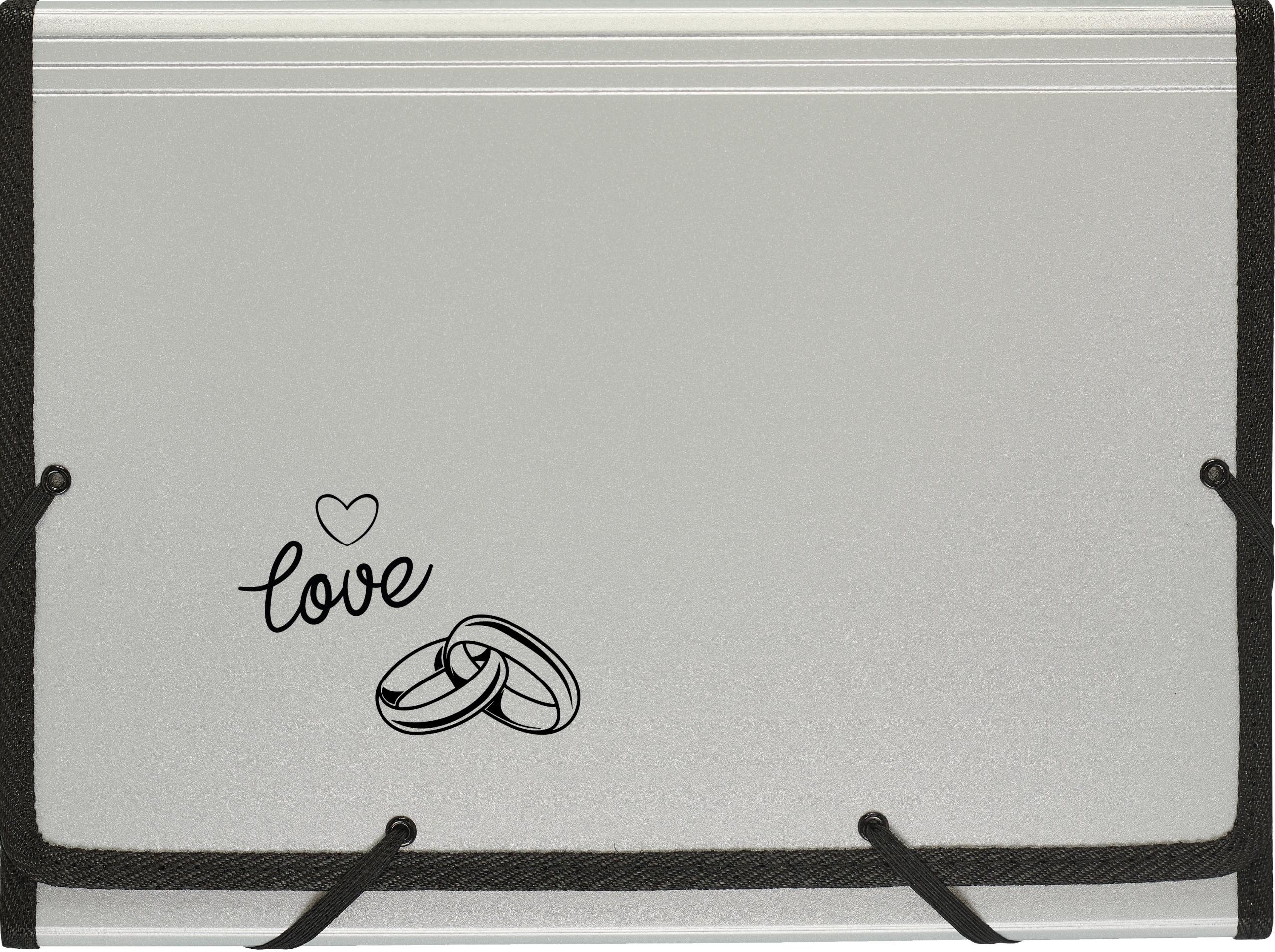 Zusammenfassend ist die KOLMA Fächermappe Wedding A4 11.134.07 in Silber mit dem Schriftzug «love» eine stilvolle und praktische Lösung zur Aufbewahrung Ihrer Hochzeitsunterlagen. Überzeugen Sie sich selbst von der Kombination aus ansprechendem Design und funktionaler Vielfalt und bringen Sie Ordnung in Ihre Hochzeitsvorbereitungen!