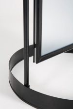 Mit seinem robusten schwarzen Metallgestell und den rostfreien Klapprahmen bietet Ihnen dieser Kundenstopper eine beeindruckende Präsentationsmöglichkeit für Ihre Werbebotschaften. Die Kombination aus Stabilität und Eleganz macht ihn zu einem Highlight für jede Werbekampagne.