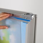 Ein rostfreier Klapprahmen bildet das stabile Gerüst unseres Kundenstoppers. Durch ein rundumlaufendes Gummiband ist eine wasserdichte Abdichtung gewährleistet, die auch bei Regen oder hoher Luftfeuchtigkeit Ihre Werbeinhalte schützt. Somit bleiben Ihre Botschaften klar und deutlich erkennbar, unabhhängig von den Umwelteinflüssen.