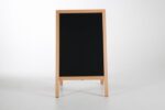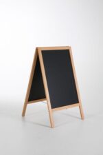 Der zweiseitige Kundenstopper aus Massivholz ist die perfekte Wahl, um Ihre Werbebotschaften stilvoll und effektiv zu präsentieren. Die Kreidetafel auf beiden Seiten ermöglicht es Ihnen, kreativ und ansprechend mit Kreidemarkern zu arbeiten. Die einfache Reinigung sorgt dafür, dass Ihre Informationen immer klar und gut lesbar bleiben.