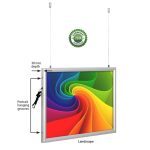Der doppelseitige LED Leuchtrahmen überzeugt nicht nur durch seine Funktionalität, sondern auch durch seine Vielseitigkeit. Dank des mitgelieferten Seilsets können Sie den Leuchtrahmen auch deckenhängend im Hochformat nutzen. Alternativ ist er freistehend einsetzbar und somit perfekt für verschiedene Bereiche wie Messen, Geschäfte oder Büros geeignet. Die einfache Wandmontage ermöglicht zudem eine unkomplizierte Befestigung.