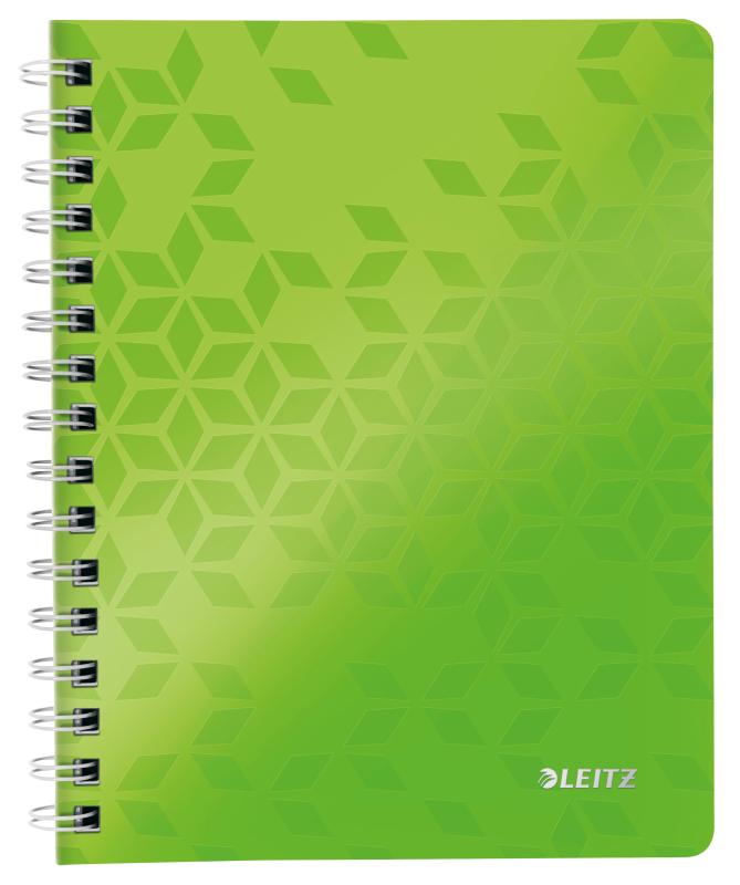 Das LEITZ Spiralbuch WOW PP A4 in grün bietet 80 Blatt für kreative Notizen und Organisation. Ideal für Schule und Büro, robust und im trendigen Design.