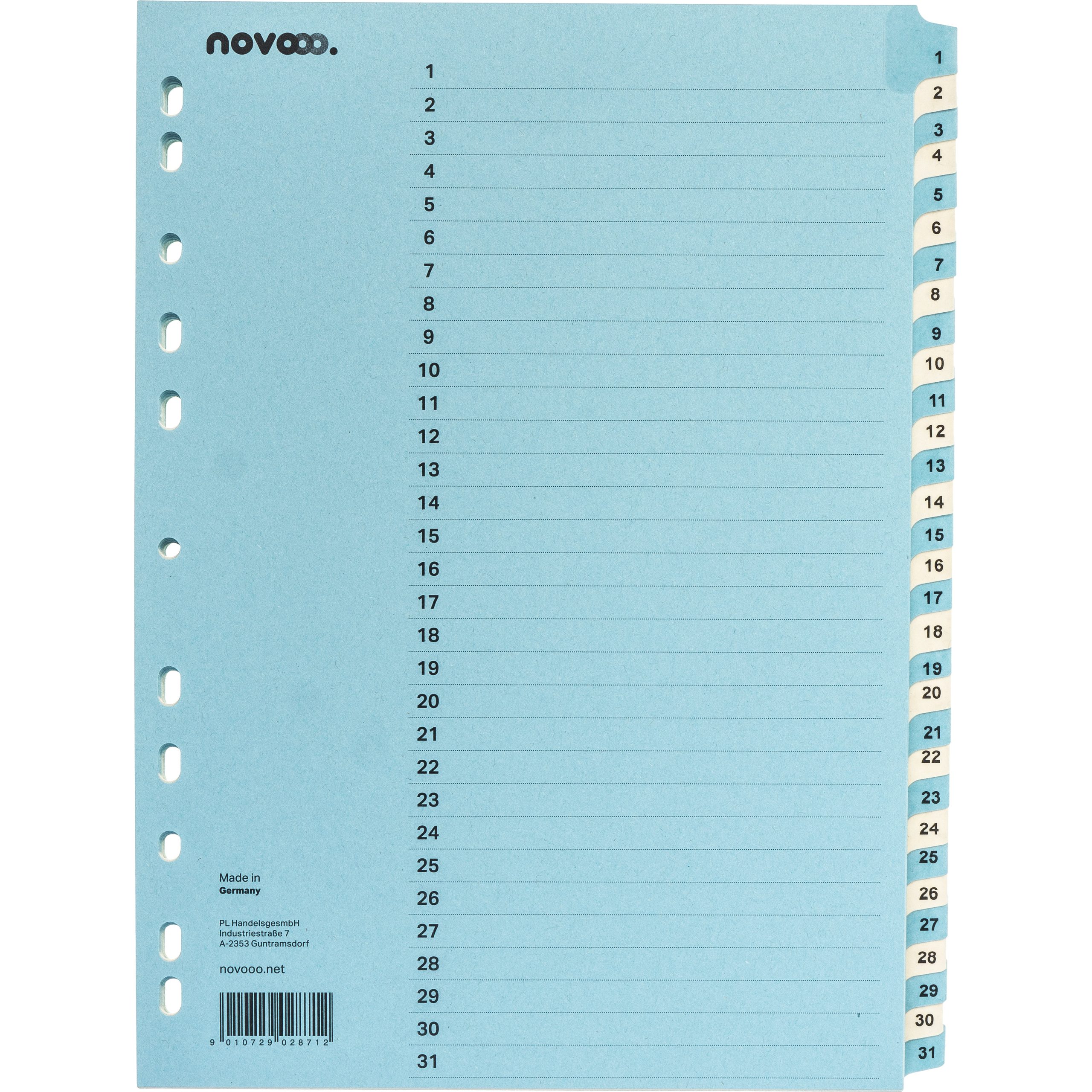 Organisieren Sie Ihre Unterlagen mit dem NOVOOO Kartonregister A4 40553 in blau/beige. Ideal für eine klare Strukturierung von Dokumenten von 1 bis 31.