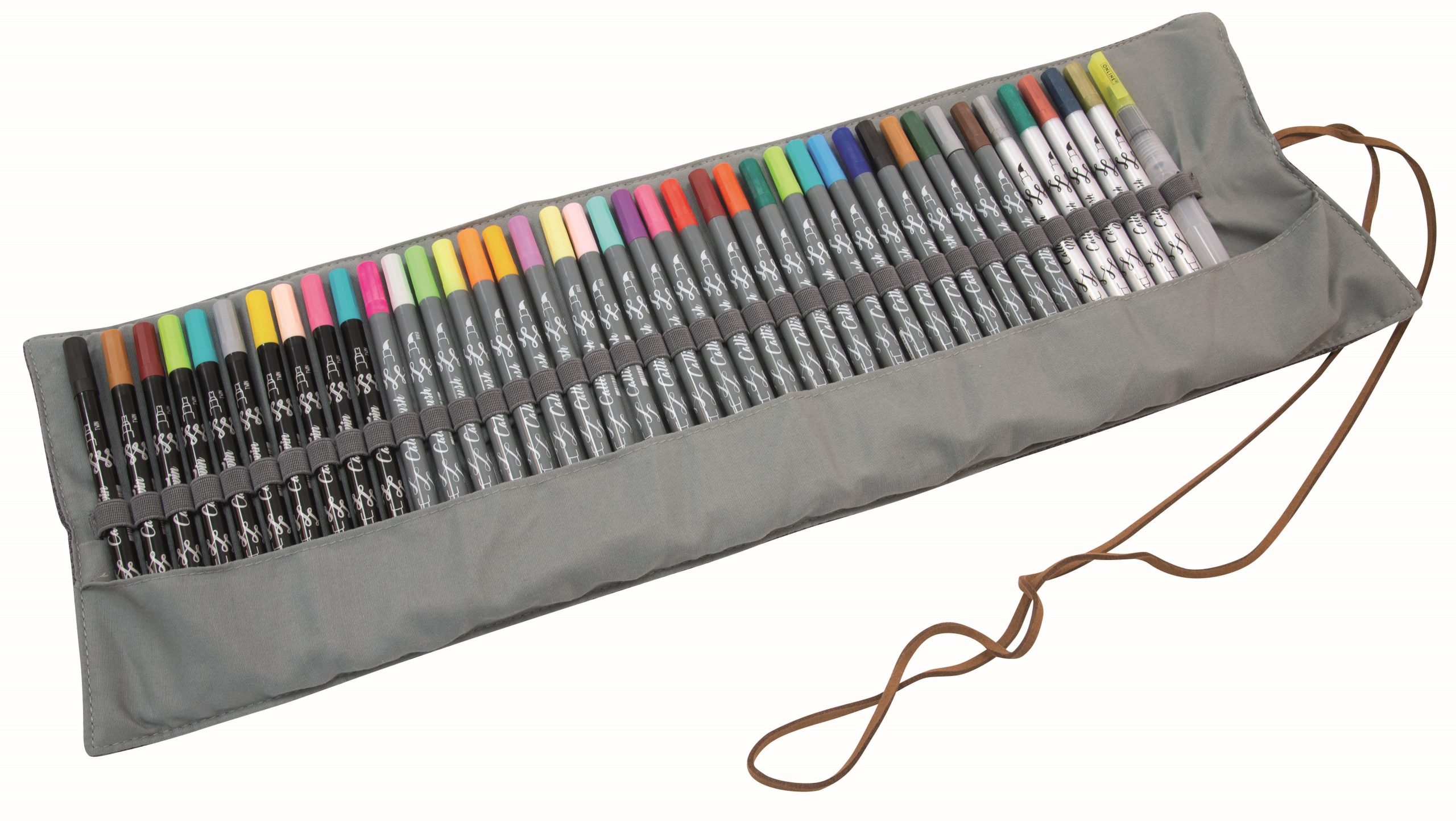 Der ONLINE Calli Twin & Calli Brush Roll Pouch enthält 41 hochwertige Stifte für kreative Projekte. Ideal für Kalligraphie und Zeichnungen, perfekt für Künstler und Bastler.