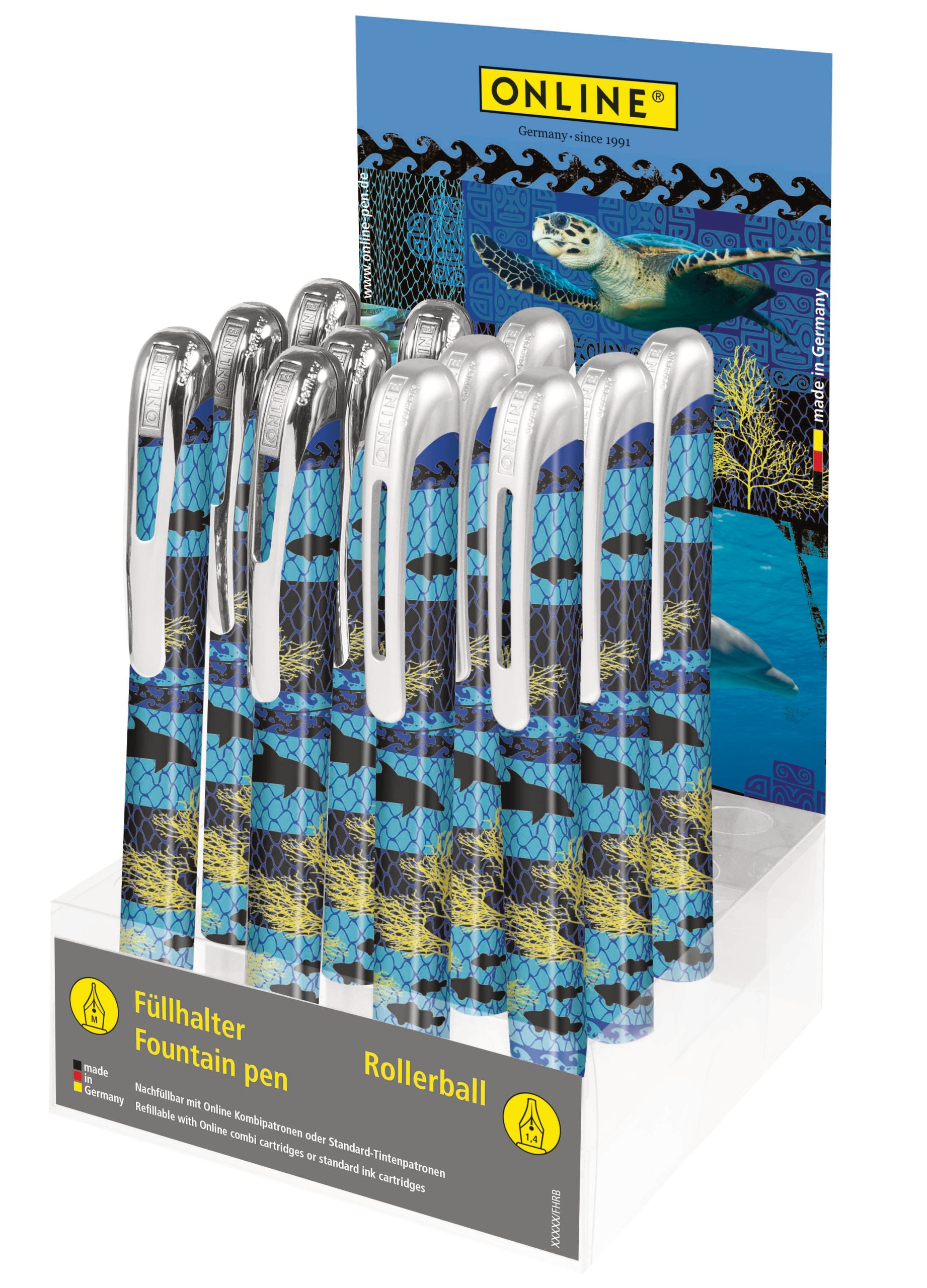 Ob für kreative Notizen, präzise Zeichnungen oder formelle Schriftstücke – der ONLINE Display Save My World ist vielseitig einsetzbar. Der Füllhalter bietet eine feine, auswechselbare Feder, die ein gleichmässiges und flüssiges Schreiben ermöglicht. Der Tintenroller hingegen sorgt für eine klare und saubere Schrift, ideal für alltägliche Aufgaben. Beide Schreibgeräte sind die perfekte Wahl für Schüler, Studenten und Berufstätige.