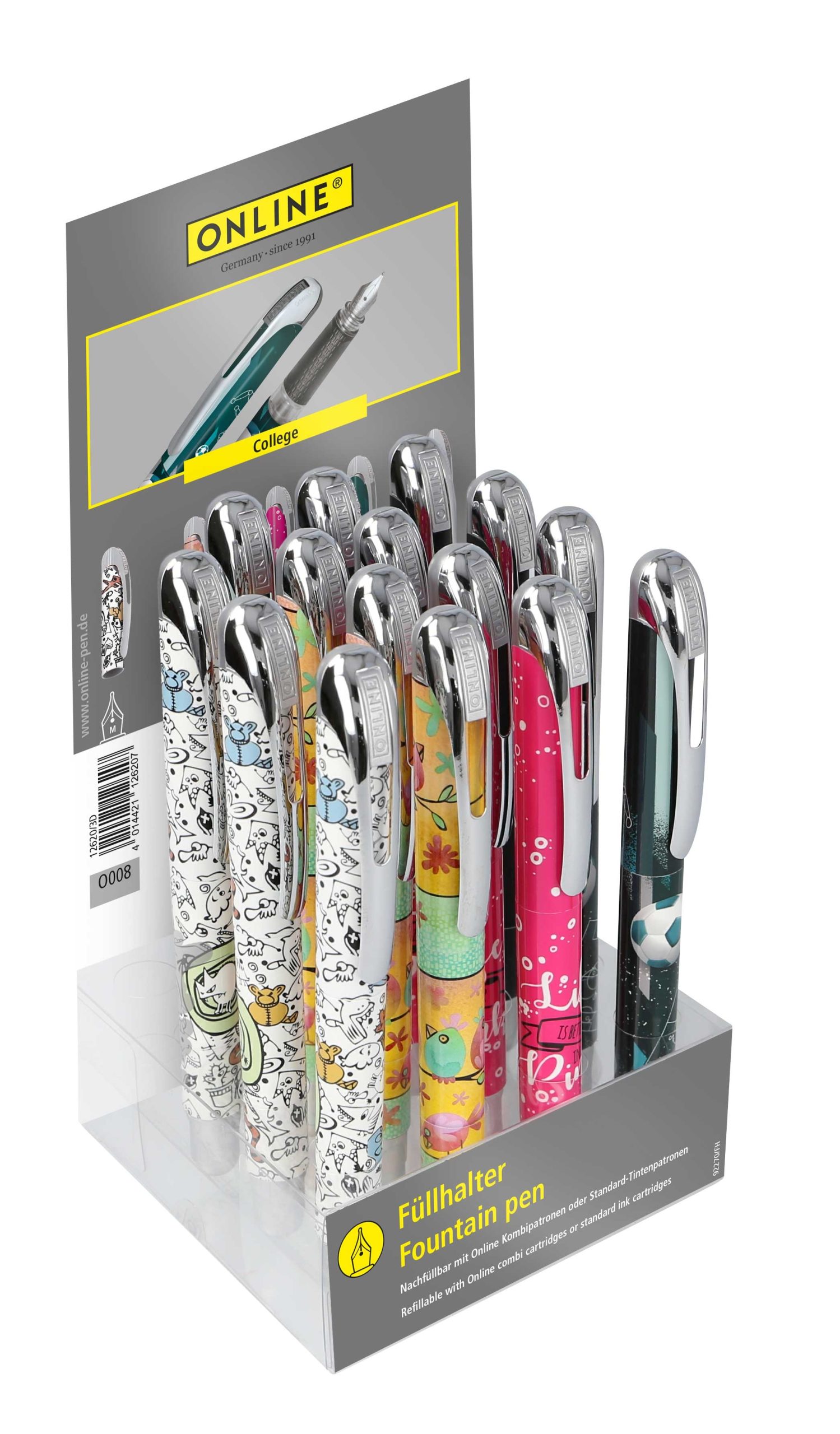 Der ONLINE Füllhalter Display 12636/15 Cool Vibrations ist eine innovative Schreiblösung, die sowohl für Schüler als auch für kreative Köpfe geeignet ist. Mit seinem fröhlichen und modernen Design bringt dieser Füllhalter Farbe und Freude in den Schreiballtag. Das Display enthält 15 Stück und ist ideal für den Einsatz in Schulen, Büros oder für den persönlichen Gebrauch.