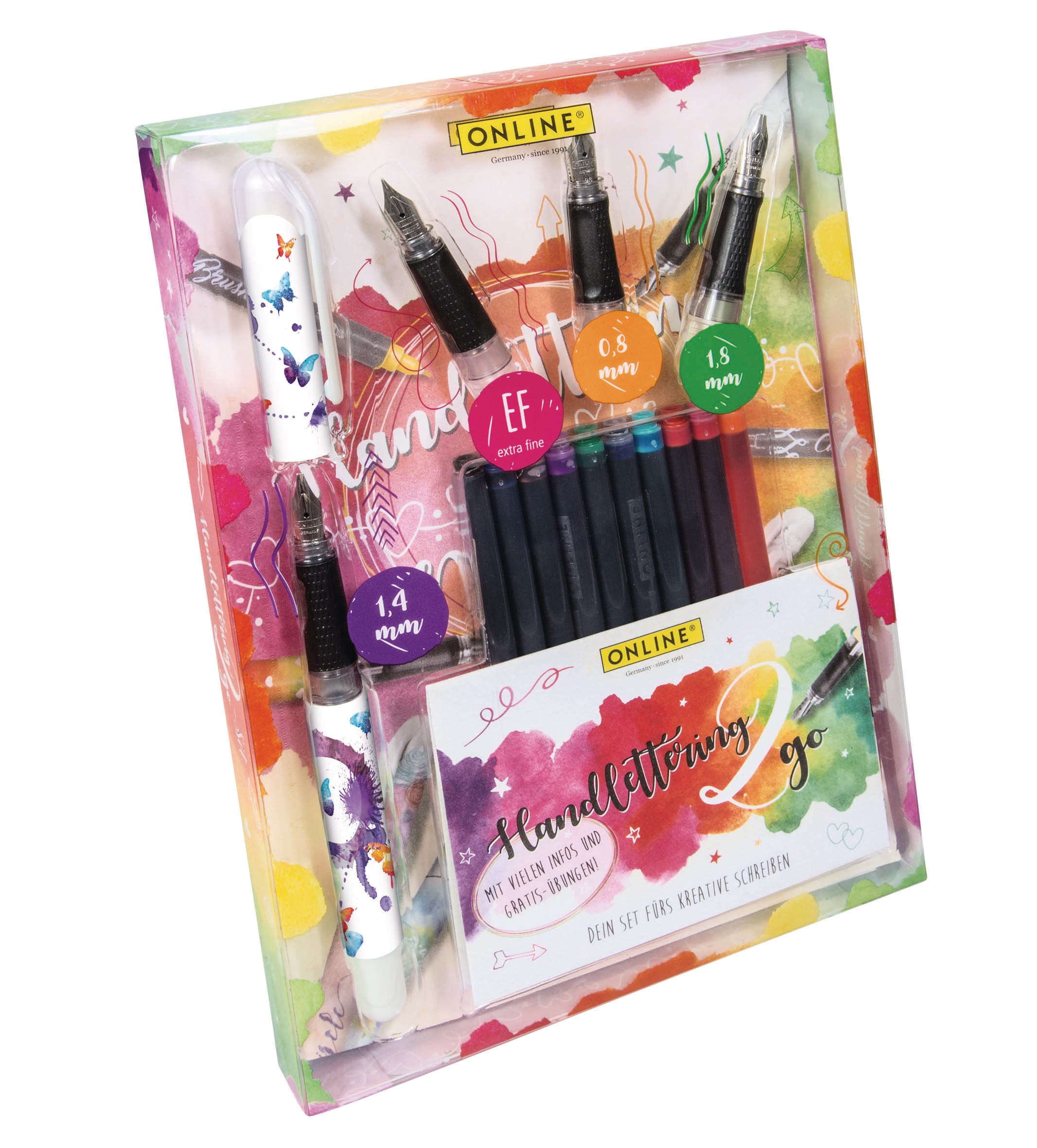 Mit dem Handlettering Set von Handlettering2Go erhältst du alles, was du für deine kreativen Schreibprojekte brauchst. Das Set beinhaltet einen College Füllhalter mit einer 1,4 mm Feder, die dir ein angenehmes und präzises Schreibgefühl bietet. Zusätzlich erhältst du drei verschiedene Federstärken (EF, 0,8 mm, 1,8 mm), um verschiedene Schriftarten und Stile auszuprobieren.