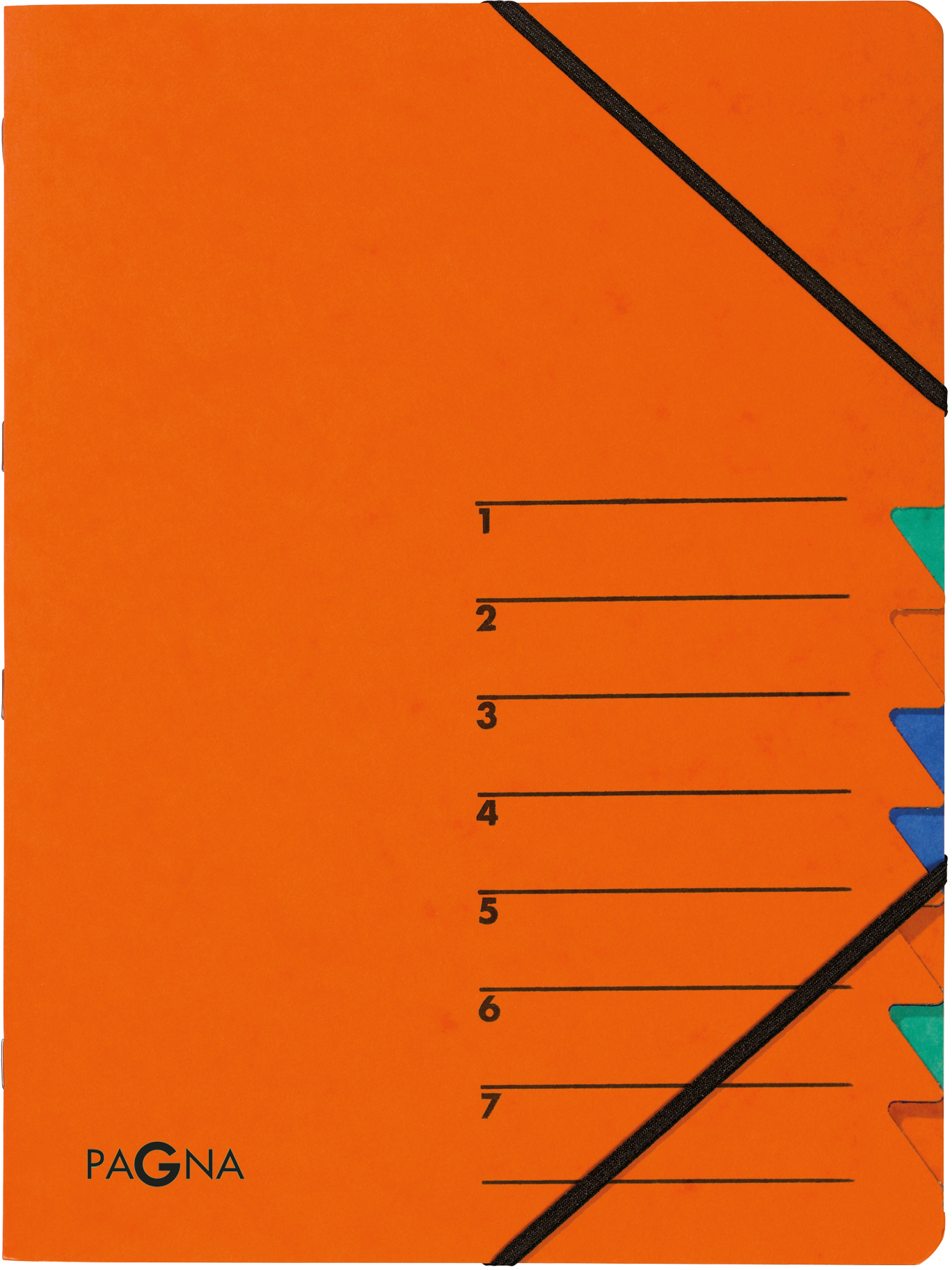 Die PAGNA Fächermappe EASY A4 in der leuchtenden Farbe Orange ist der ideale Begleiter für alle, die Ordnung und Übersichtlichkeit in ihren Dokumenten schätzen. Mit insgesamt 7 Fächern bietet diese praktische Mappe ausreichend Platz, um Ihre Unterlagen sicher und geordnet aufzubewahren. Ob für Schule, Studium oder Beruf – die Fächermappe ist vielseitig einsetzbar und erleichtert Ihnen den Alltag.