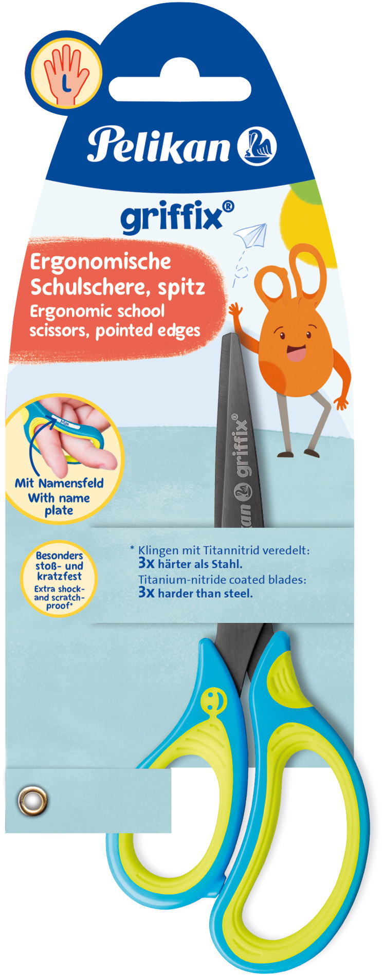 Die PELIKAN Schere spitz Griffix 810265 in fresh blue ist speziell für Linkshänder konzipiert und bietet eine ausgezeichnete Kombination aus Funktionalität und ansprechendem Design. Mit ihrem ergonomischen Griff und der spitzen Schneide eignet sich diese Schere ideal für präzise Schnitte in verschiedenen Materialien, von Papier bis hin zu dünnem Karton.