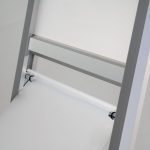Je nach Bedarf ist der mobile Prospektständer mit 2 x A4 Ablagen in einer Höhe von 1000mm oder mit 3 x A4 Ablagen in einer Höhe von 1290mm erhältlich. Diese Höhen sind ideal, um die Aufmerksamkeit der Besucher zu gewinnen und eine optimale Präsentation Ihrer Printmaterialien zu gewährleisten.