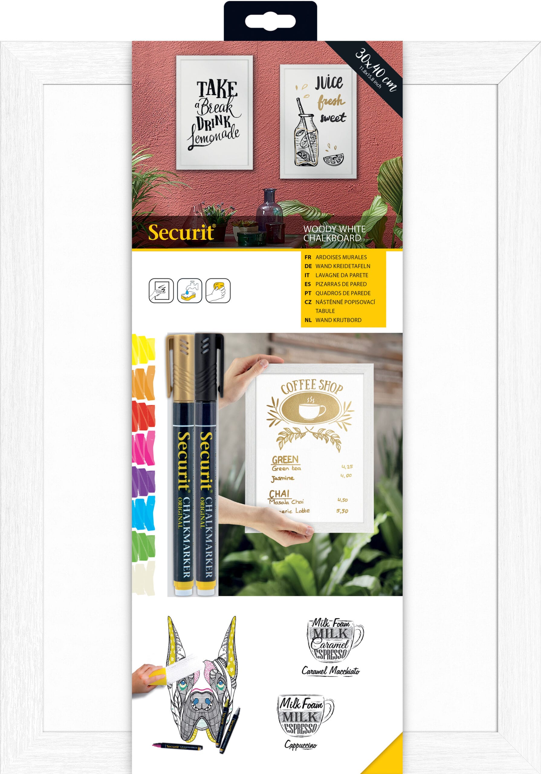 Um direkt loslegen zu können, wird die WOODY Kreidetafel mit einem praktischen Wandmontageset geliefert. Ein Securit® Kreidestift ist ebenfalls im Lieferumfang enthalten, sodass Sie Ihre Gedanken sofort festhalten können.