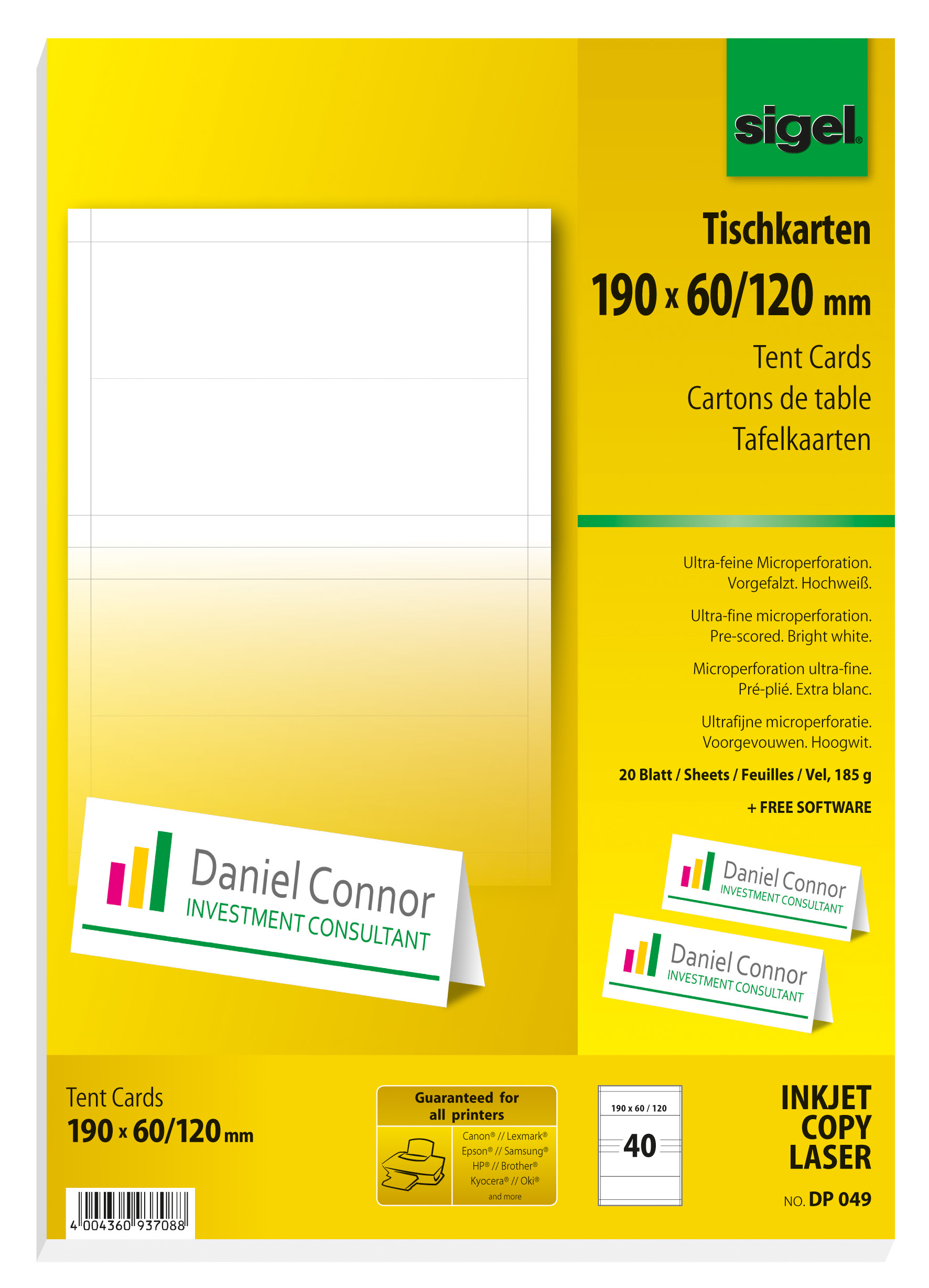 Die SIGEL Tischkarten 190x60mm DP049 in Weiss (185g, 40 Stück) sind ideal für Events, Hochzeiten und Feiern, um jedem Platz eine persönliche Note zu verleihen.