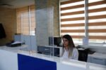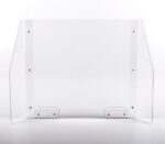 Die Hygienewand verfügt über einen stabilen Fuss, der einen sicheren Stand auf Theken, Tischen oder Rezeptionen gewährleistet. Zudem ist eine Dokumenten-Aussparung integriert, um Dokumente oder Zahlungsmittel einfach und sicher überreichen zu können, ohne die Schutzwand zu öffnen.