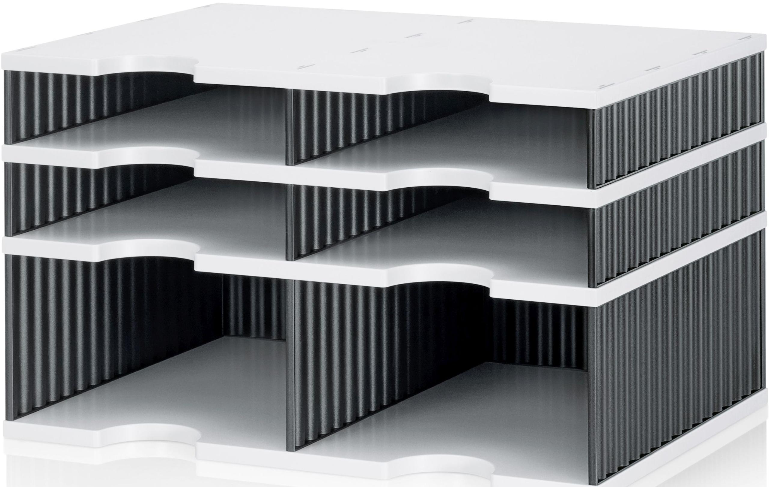 Das STYRO Ablagesystem styrodoc duo 268-2022211 in Grau und Schwarz ist die ideale Lösung für ein organisiertes und strukturiertes Arbeiten. Mit seinen sechs Fächern bietet es ausreichend Platz für Dokumente, Notizen und andere wichtige Unterlagen. Dieses moderne Ablagesystem vereint Funktionalität mit ansprechendem Design und ist somit perfekt für Büros, Home-Offices oder sogar für den privaten Gebrauch geeignet.