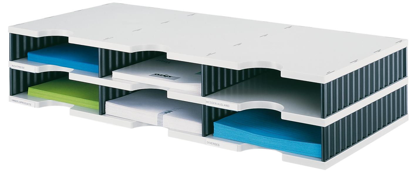Das STYRO Ablagesystem styrodoc jumbo 268-0222.98 in grau/schwarz ist die ideale Lösung für alle, die Ordnung und Übersichtlichkeit in ihrem Arbeitsbereich schätzen. Mit seinen vier grosszügigen Fächern bietet dieses Ablagesystem ausreichend Platz für Dokumente, Akten und andere wichtige Utensilien. Egal, ob im Büro, im Homeoffice oder im privaten Bereich – die durchdachte Gestaltung sorgt für effizientes Arbeiten und ein aufgeräumtes Umfeld.