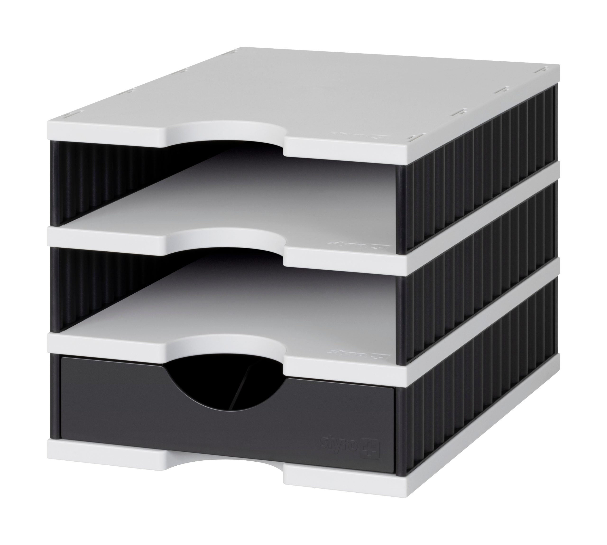 Das STYRO Ablagesystem styrodoc uno 268-0103.989 in elegantem grau/schwarz ist die ideale Lösung für eine übersichtliche und organisierte Arbeitsplatzgestaltung. Mit seinen drei praktischen Fächern bietet es ausreichend Platz für Dokumente, Büromaterialien und mehr, sodass Sie jederzeit den Überblick behalten können. Egal, ob im Büro, im Homeoffice oder in der Schule – dieses Ablagesystem unterstützt Sie dabei, Ihre Unterlagen effizient zu verwalten.