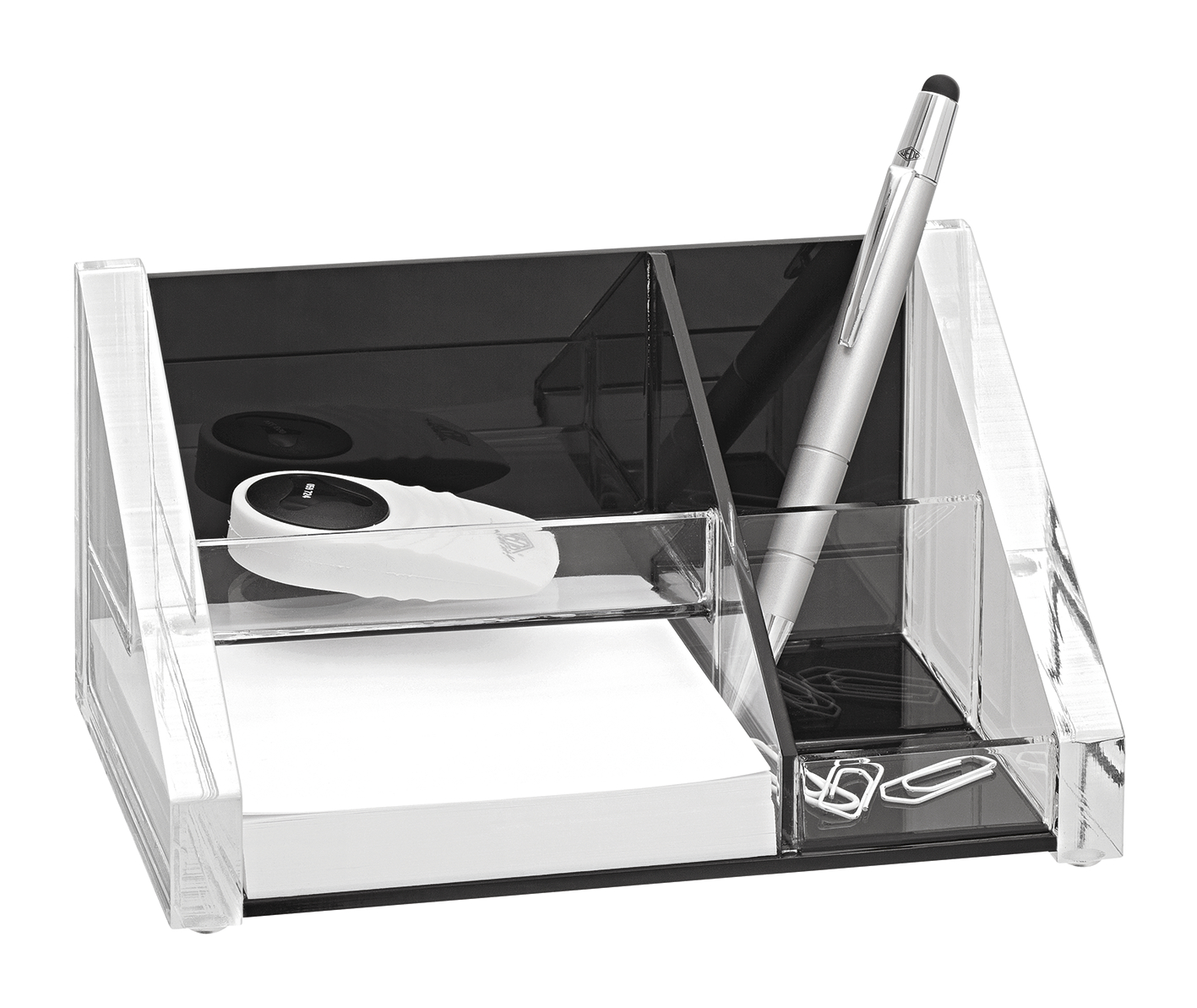 • Stilvolles Design: Die Kombination aus glasklarem Acryl und schwarzem Untergrund verleiht jedem Arbeitsplatz eine moderne Note.