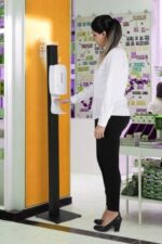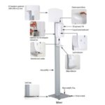 Mit einer Gesamthöhe von 1325 mm ist der Desinfektionsspender ONE optimal platziert, um eine komfortable Höhe für die Nutzer zu bieten. Ideal für den Einsatz in öffentlichen Einrichtungen, Geschäften, Büros und anderen Bereichen.