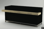 Moderne Eleganz für Ihren Verkaufsraum: Schwarzer Verkaufstresen mit Eichenoptik-Taschenablage