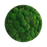 Der Mooskreis ist von einer hochwertigen Edelstahlumrahmung eingefasst und besteht aus zu 100% echtem, konservierten Moos. Für den Innenbereich konzipiert, um Ihrem Zuhause natürliche Frische zu verleihen.