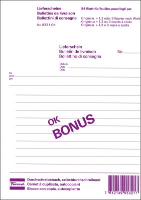 FAVORIT Quittungen OK BONUS D/F/I A6 8396 OK Durchschreibepapier 84 Blatt